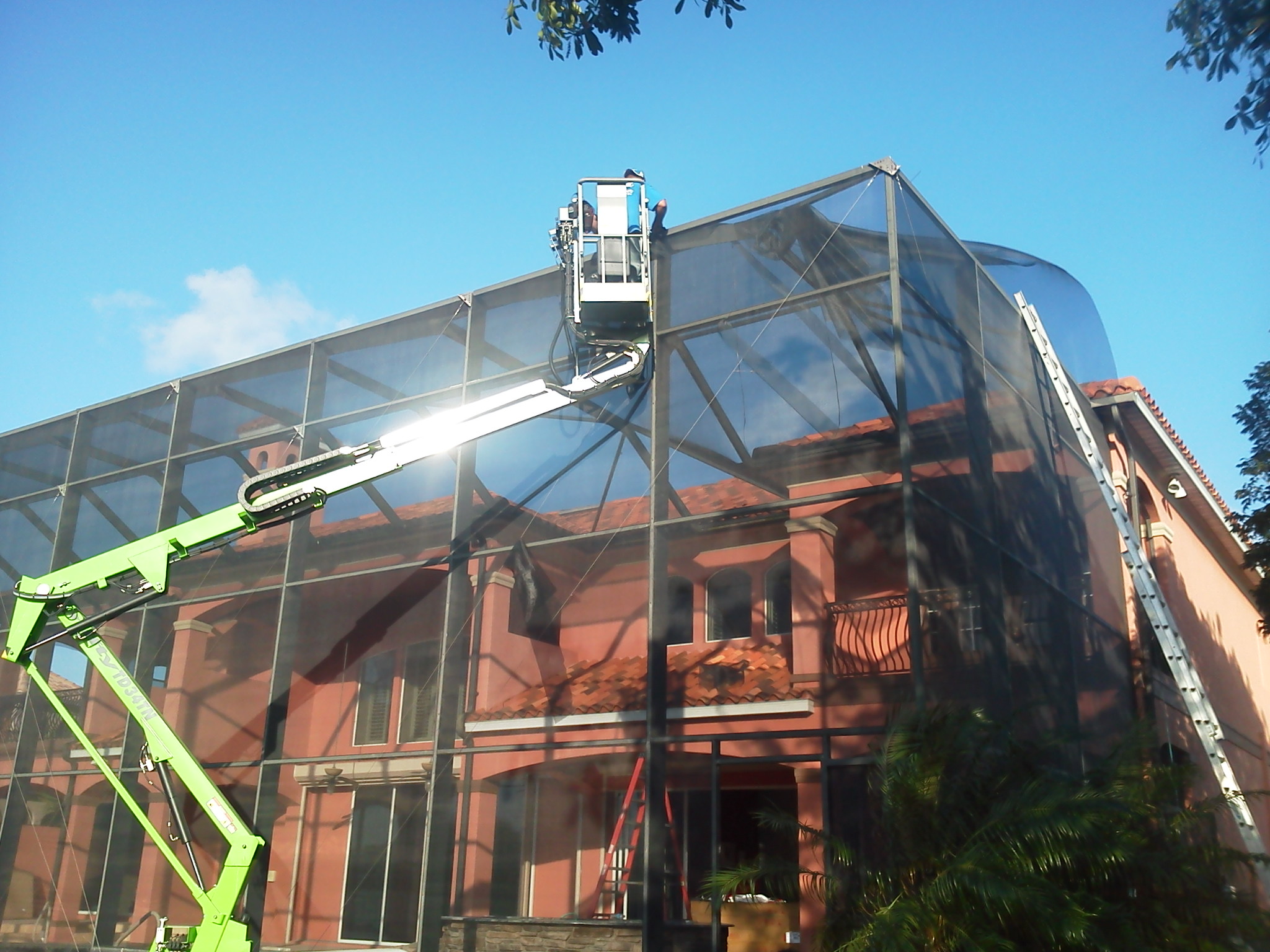 (We wont let you waste your money screening an unstable or unsafe cage) REMOVAL and DISPOSAL of old screen as well as TIGHTEN ALL CABLES. WHEN SCHEDULING A RESCREEN ESTIMATE ASK ABOUT : ~NYLO TECH SCREWS. !! TEN YEAR WARRANTY !!